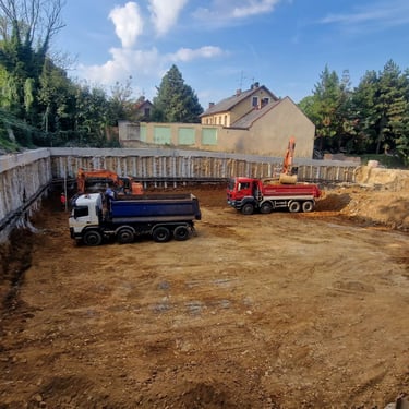 Los pilotes CFA perforados para edificios y como protección de excavaciones profundas se realizan utilizando equipos de perforación especializados. También disponemos de equipos de perforación para excavadoras, lo que nos permite trabajar en proyectos pequeños y de difícil acceso, donde no pueden entrar las máquinas perforadoras estándar.