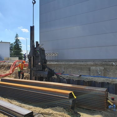 Realizamos protecciones mediante la construcción de empalizadas con micropilotes, pilotes CFA, muros pantalla con láminas Larsen y muros berlineses.Disponemos de nuestro propio martillo vibratorio para excavadora y una máquina hidráulica de empuje tipo Silent Piller para trabajar en instalaciones sensibles a las vibraciones.