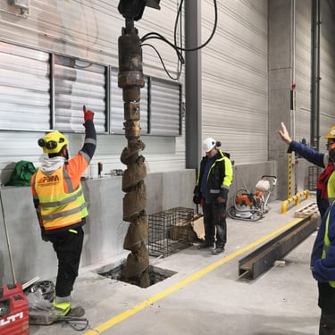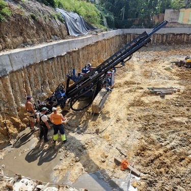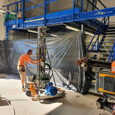 Realizamos micropilotes tanto en terrenos abiertos como en proyectos con espacio limitado, dentro de naves y edificios, con el fin de reforzar las estructuras existentes.